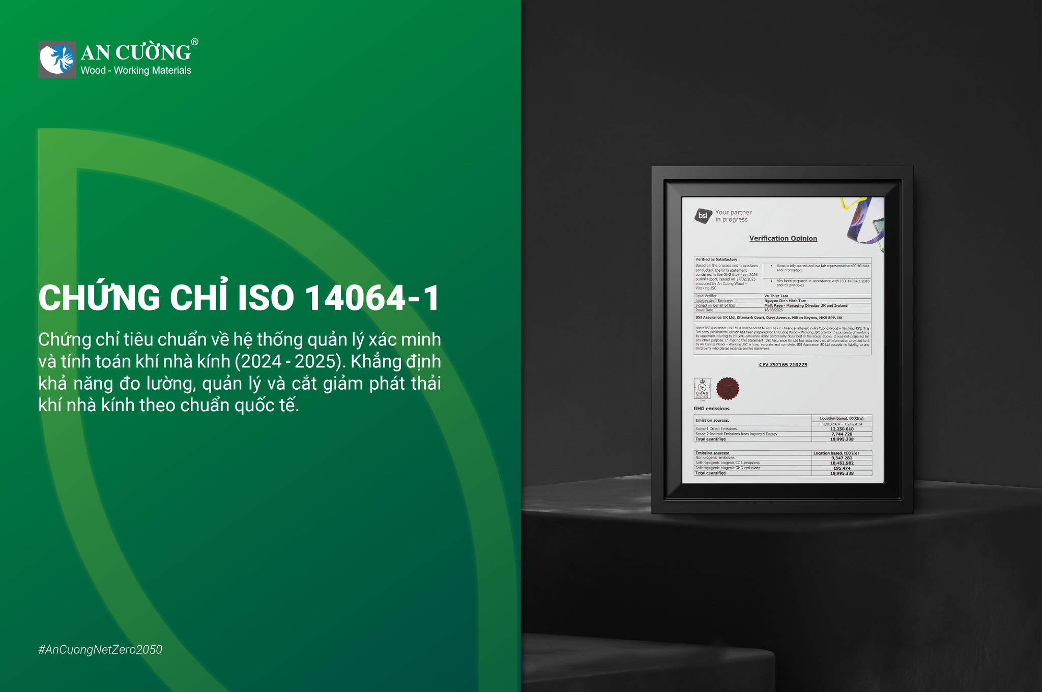 Chứng chỉ ISO 14064-1: Khẳng định khả năng đo lường, quản lý và cắt giảm phát thải khí nhà kính theo chuẩn quốc tế.