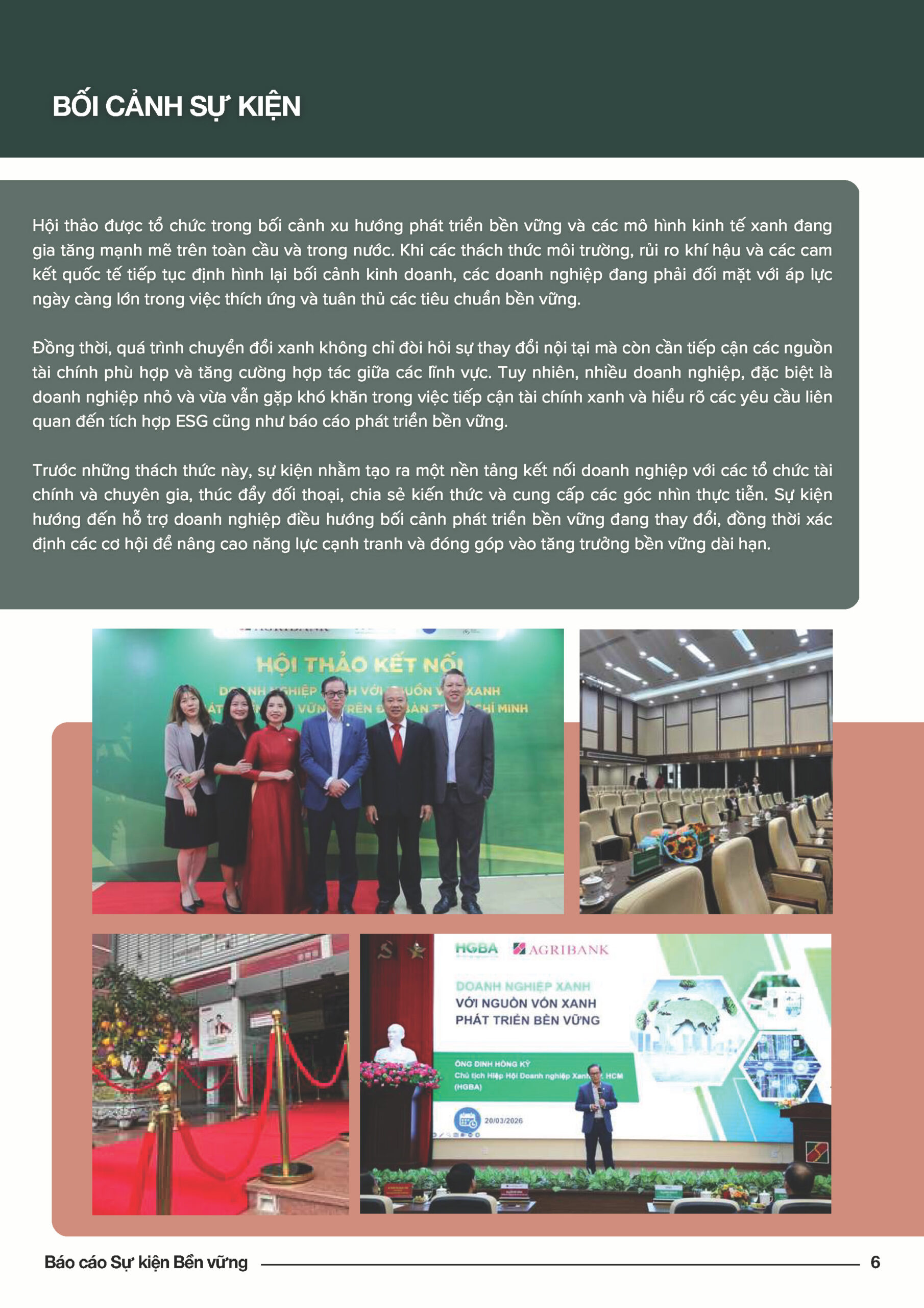 Hội thảo “Kết nối doanh nghiệp xanh với nguồn vốn xanh cho phát triển bền vững”, do Văn phòng Đại diện Agribank khu vực miền Nam (Agribank Chi nhánh Thành phố Hồ Chí Minh) phối hợp cùng Hiệp hội Doanh nghiệp Xanh TP.HCM (HGBA) tổ chức vào tháng 03/2026, tiếp tục khẳng định vai trò tiên phong của Agribank trong việc thúc đẩy tín dụng bền vững đối với lĩnh vực nông nghiệp, nông thôn nói riêng và sự phát triển kinh tế, xã hội tại TP.HCM nói chung.