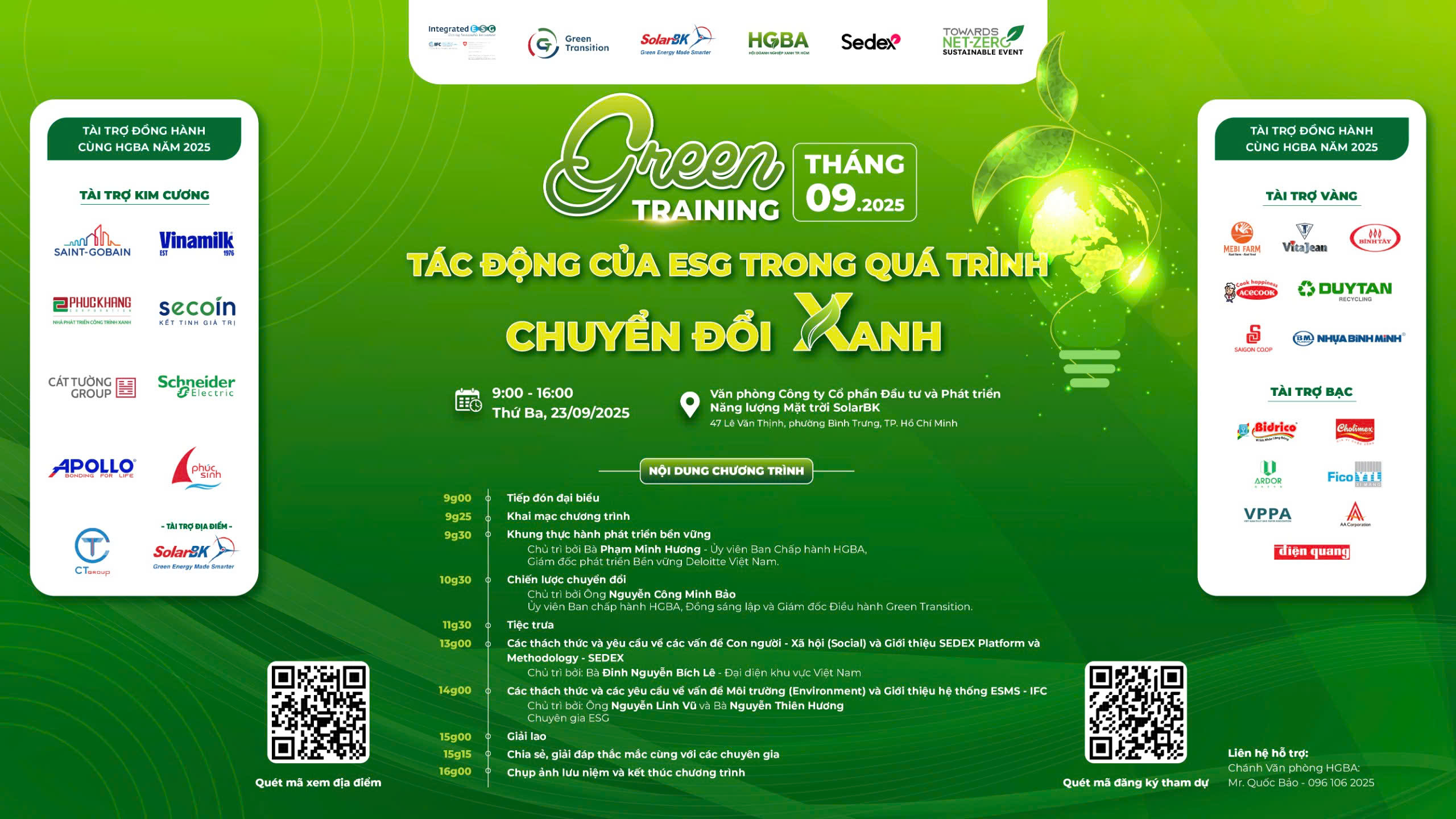HGBA GREEN TRAINING 09.2025 – TÁC ĐỘNG CỦA ESG TRONG CHUYỂN ĐỔI XANH – ĐĂNG KÝ NGAY