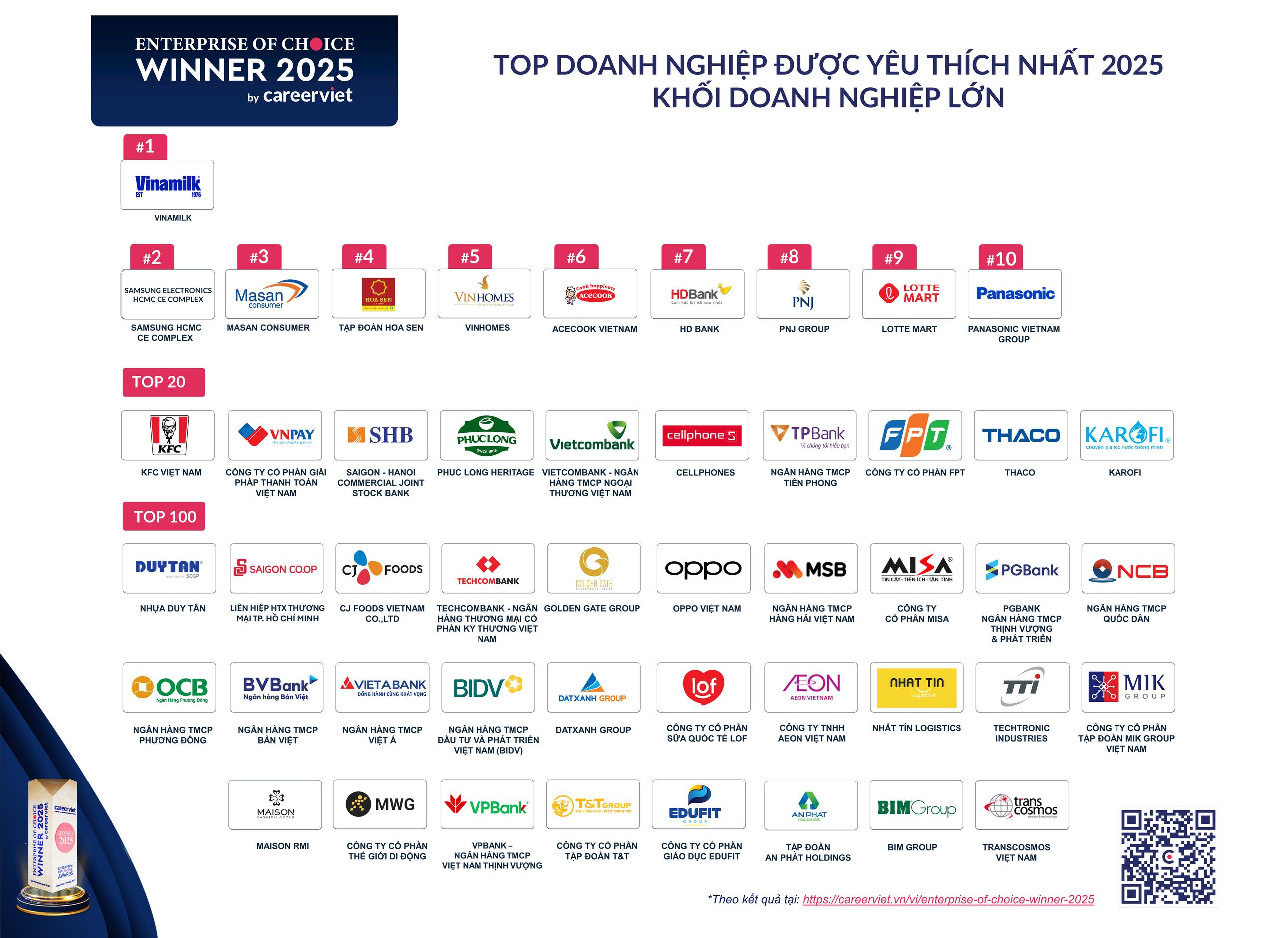 CHÚC MỪNG VINAMILK, DUYTAN RECYCLING VÀ CÔNG TY CỔ PHẦN PHÚC SINH LÀ NHỮNG DOANH NGHIỆP ĐƯỢC YÊU THÍCH NHẤT 2025