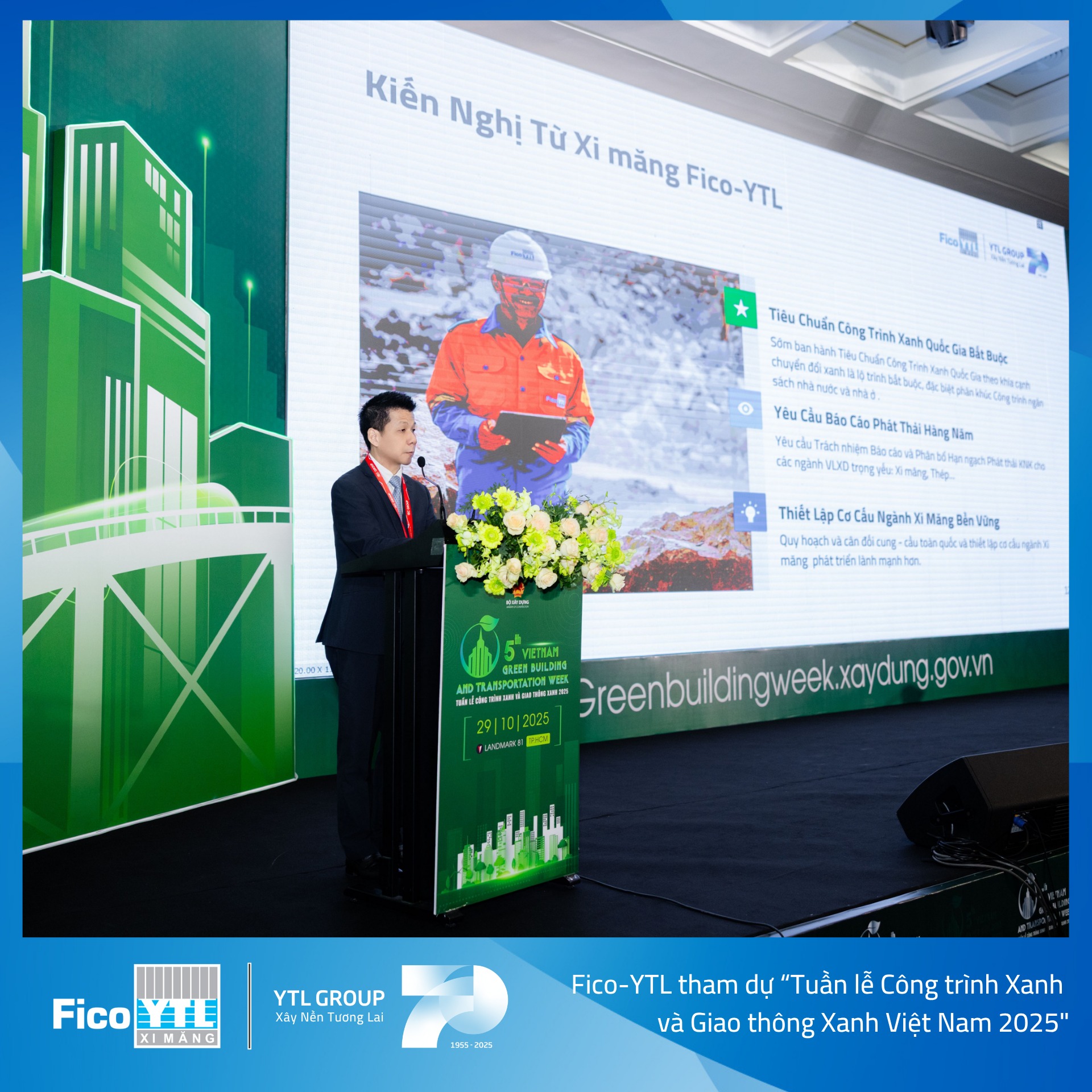 Tại buổi tọa đàm sáng 29/10 vừa qua, ông Nguyễn Công Bảo – Giám đốc Điều hành Fico-YTL, đã chia sẻ về chiến lược phát triển vật liệu xây dựng phát thải thấp, nhấn mạnh nỗ lực giảm dấu chân carbon trong toàn chuỗi giá trị sản xuất xi măng.