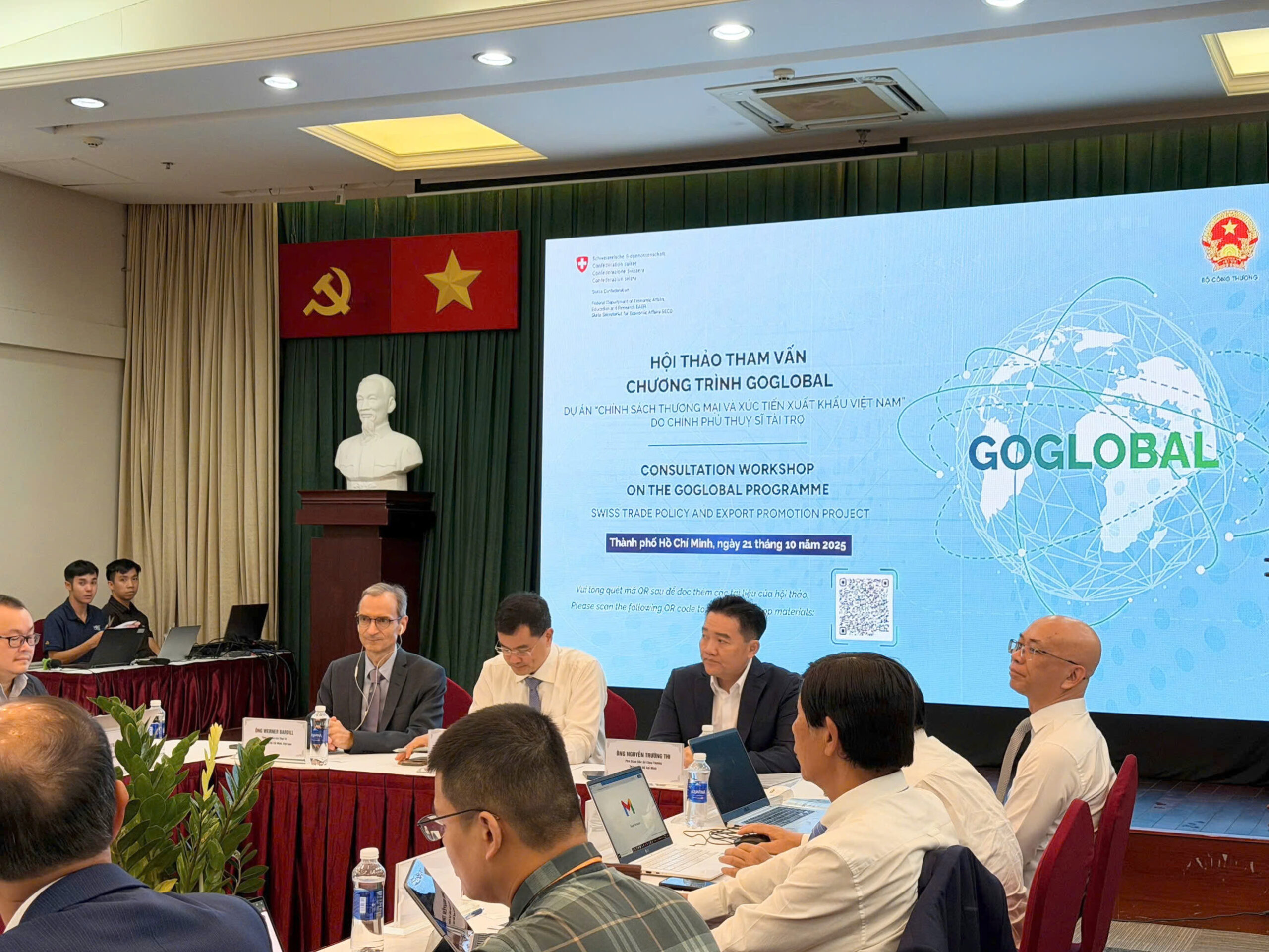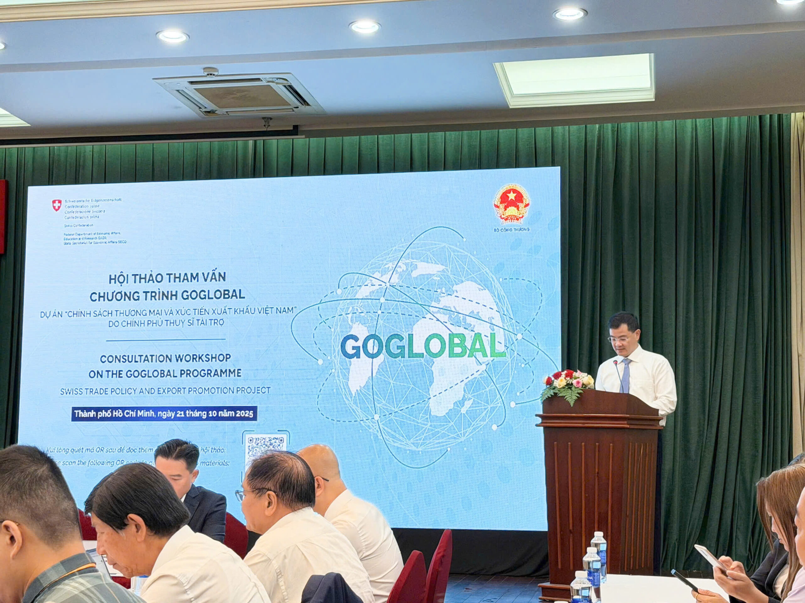 Ngày 21/10/2025, tại TP. Hồ Chí Minh, Bộ Công Thương phối hợp cùng Chính phủ Thụy Sỹ tổ chức Hội thảo tham vấn Chương trình Go Global, thuộc khuôn khổ dự án “Chính sách thương mại và xúc tiến xuất khẩu Việt Nam (SwissTrade)”. Chương trình do Cơ quan Kinh tế Liên bang Thụy Sỹ (SECO) tài trợ, hướng đến mục tiêu hỗ trợ các doanh nghiệp Việt Nam – đặc biệt là doanh nghiệp nhỏ và vừa – nâng cao năng lực xuất khẩu, tham gia sâu hơn vào chuỗi giá trị toàn cầu và phát triển bền vững trong xu thế kinh tế xanh.