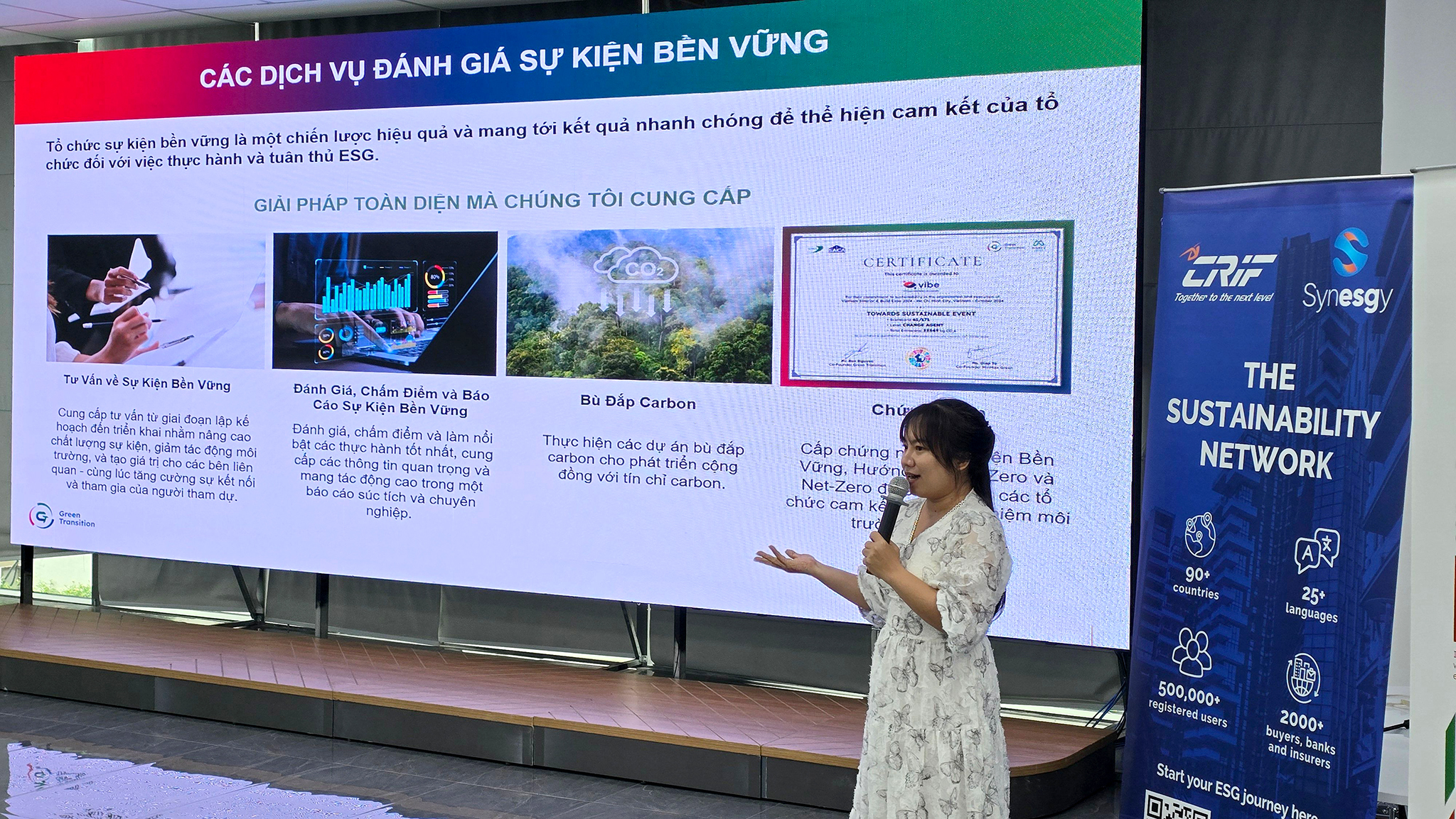 Ban tổ chức cũng giới thiệu giải pháp kết hợp từ Green Transition và CRIF Vietnam, giúp doanh nghiệp xây dựng nền tảng vững chắc với chứng chỉ ESG được quốc tế công nhận: