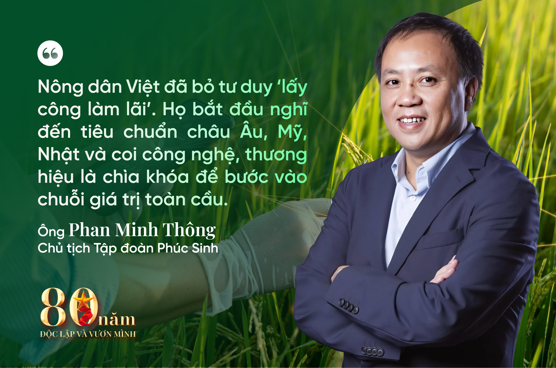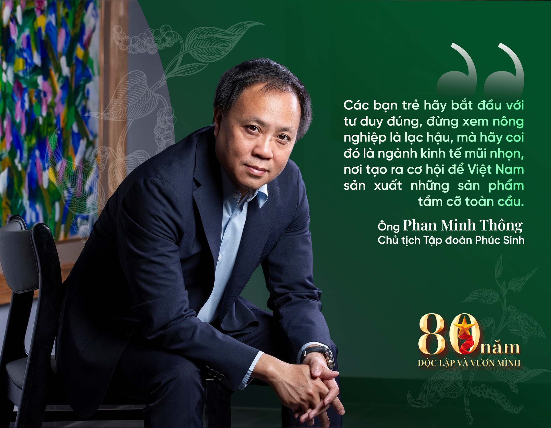 Trong dòng chảy đổi mới ấy, ông Phan Minh Thông – Chủ tịch Tập đoàn Phúc Sinh, được mệnh danh là “vua tiêu” Việt Nam, là một trong những người tiên phong, góp phần đưa nông sản Việt khẳng định vị thế trên bản đồ xuất khẩu quốc tế. Nhân dịp kỷ niệm 80 năm Quốc khánh 2/9, chúng tôi đã có cuộc trò chuyện với ông để cùng nhìn lại hành trình đổi đời kỳ diệu của nông thôn Việt Nam và lắng nghe khát vọng của một thế hệ doanh nhân nông nghiệp thời công nghệ.