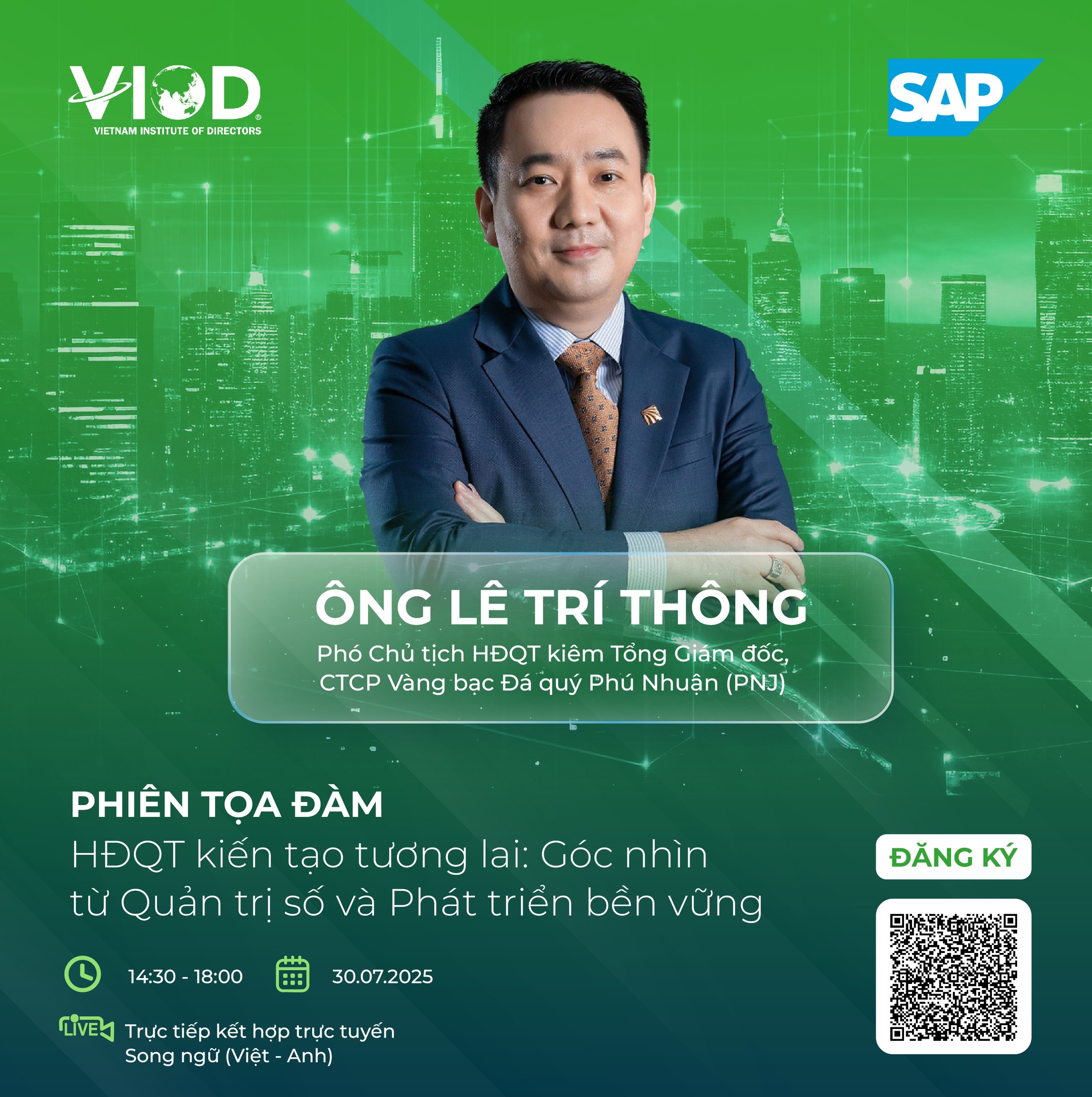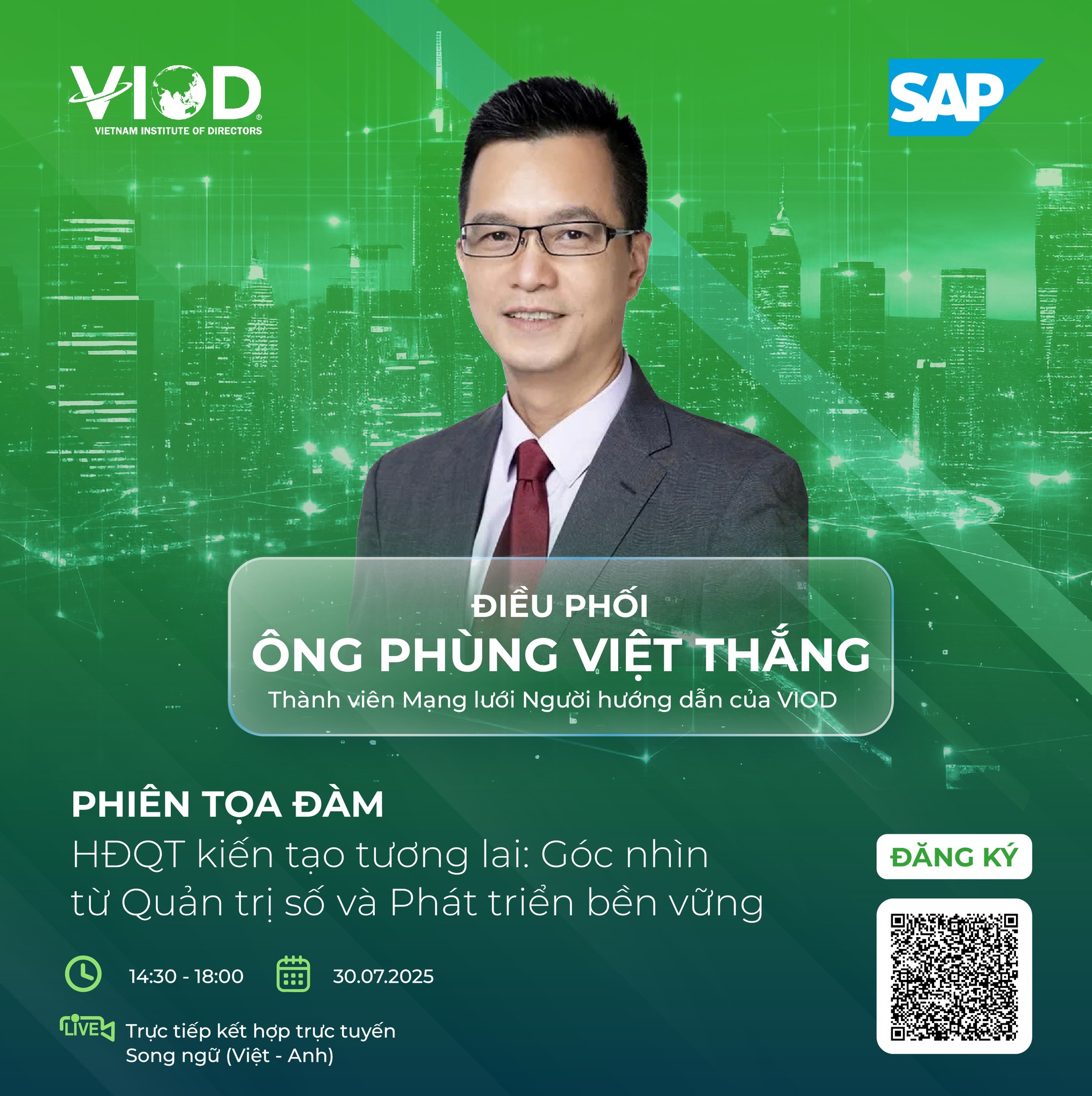 Phiên tọa đàm “HĐQT kiến tạo tương lai: Góc nhìn từ Quản trị số và Phát triển bền vững” sẽ là nơi các các Chủ tịch HĐQT, Tổng Giám đốc, chuyên gia công nghệ và quản trị hàng đầu cùng nhìn lại cách thức công nghệ đang thay đổi “luật chơi” quản trị, đồng thời chia sẻ những chiến lược tiên phong trong việc tích hợp ESG và dữ liệu vào quá trình hoạch định, giám sát và điều hành.